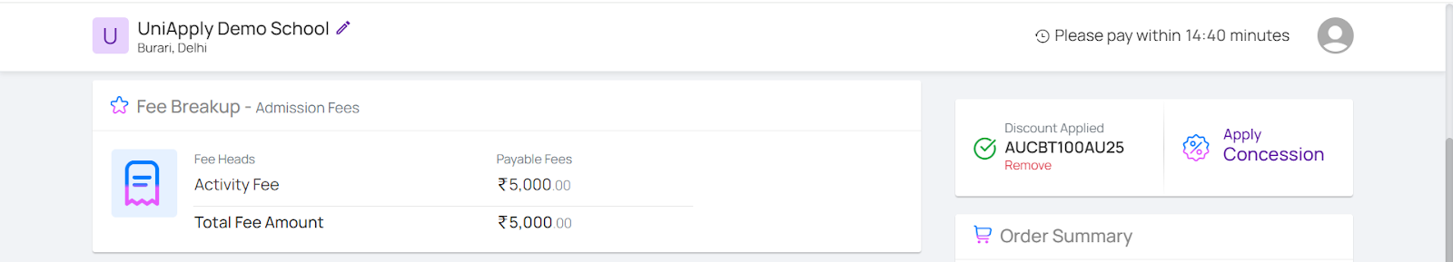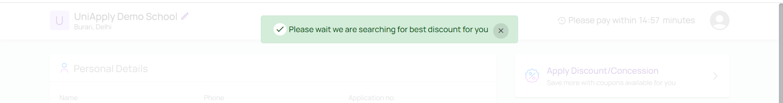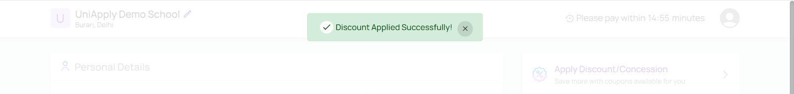 - The applicant can still remove the discount which is already applied and can complete the payment or apply any other discount if they want.