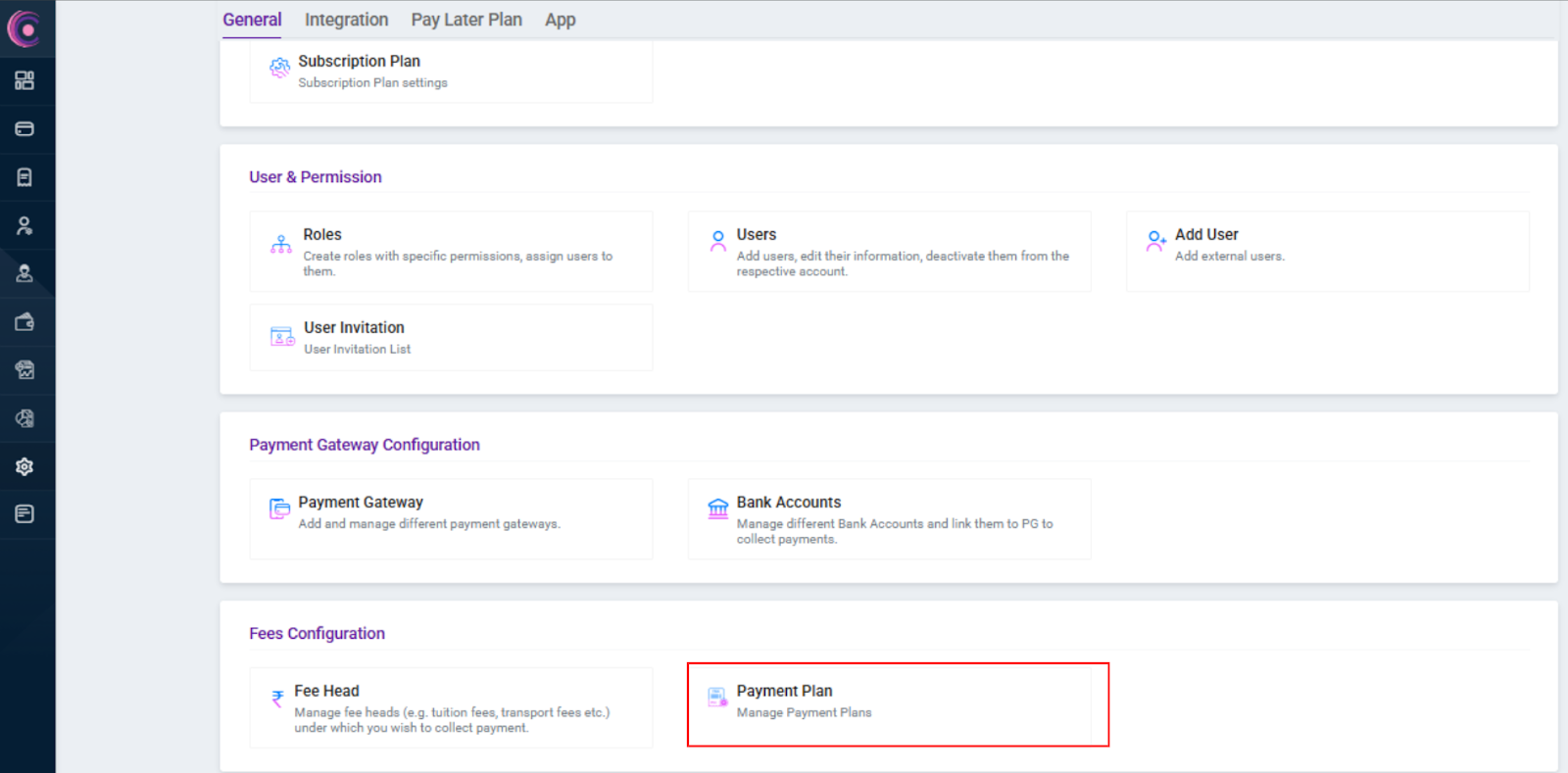 - Go to Global Settings and click on "Payment Plan".