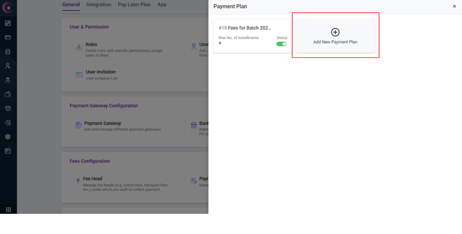 - Click on "Add New Payment Plan" to create a customized installment plan for students/applicants.