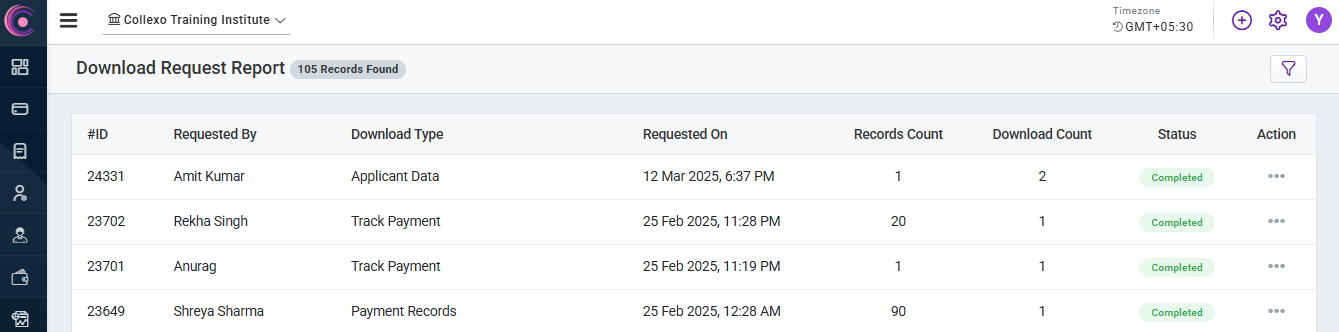 As you work with data across your institution’s portal, it’s important to keep track of the files you and your team downloads. The Download Requests page helps you do exactly that. It provides a centralized view of every download initiated within your account, showing who requested it, what type of file was downloaded, and the current status. With this page, you can easily review your download history and quickly access the files you need.