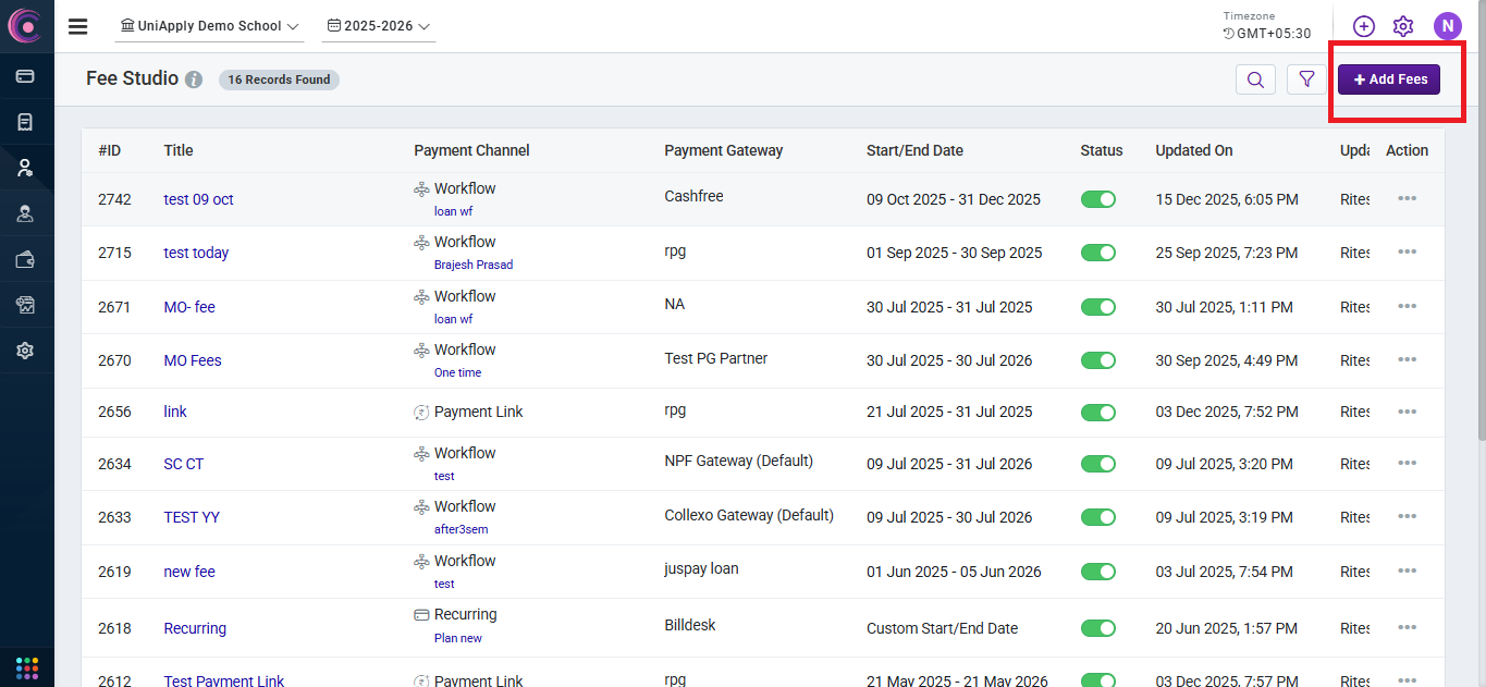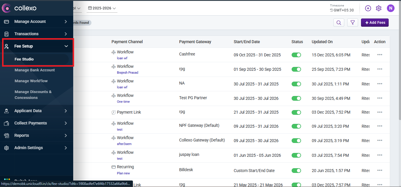 In order to collect fees from your students/applicants, it is absolutely necessary to have a fee studio defined for the same.