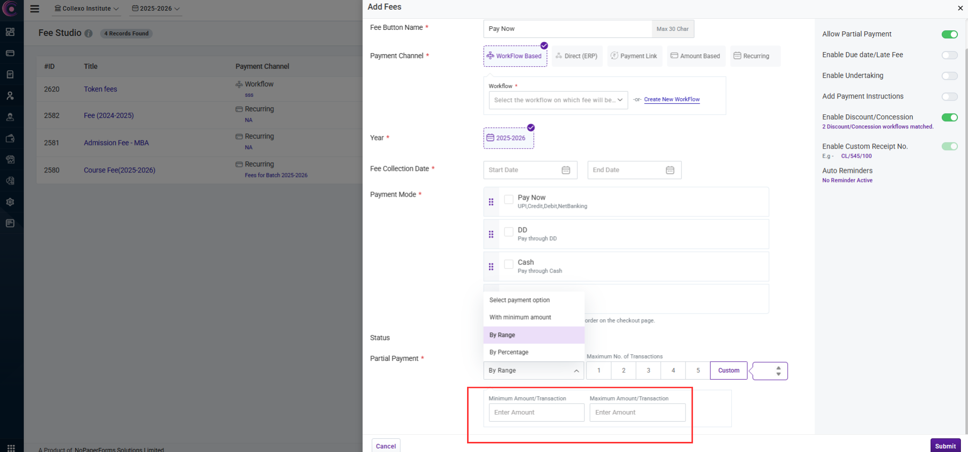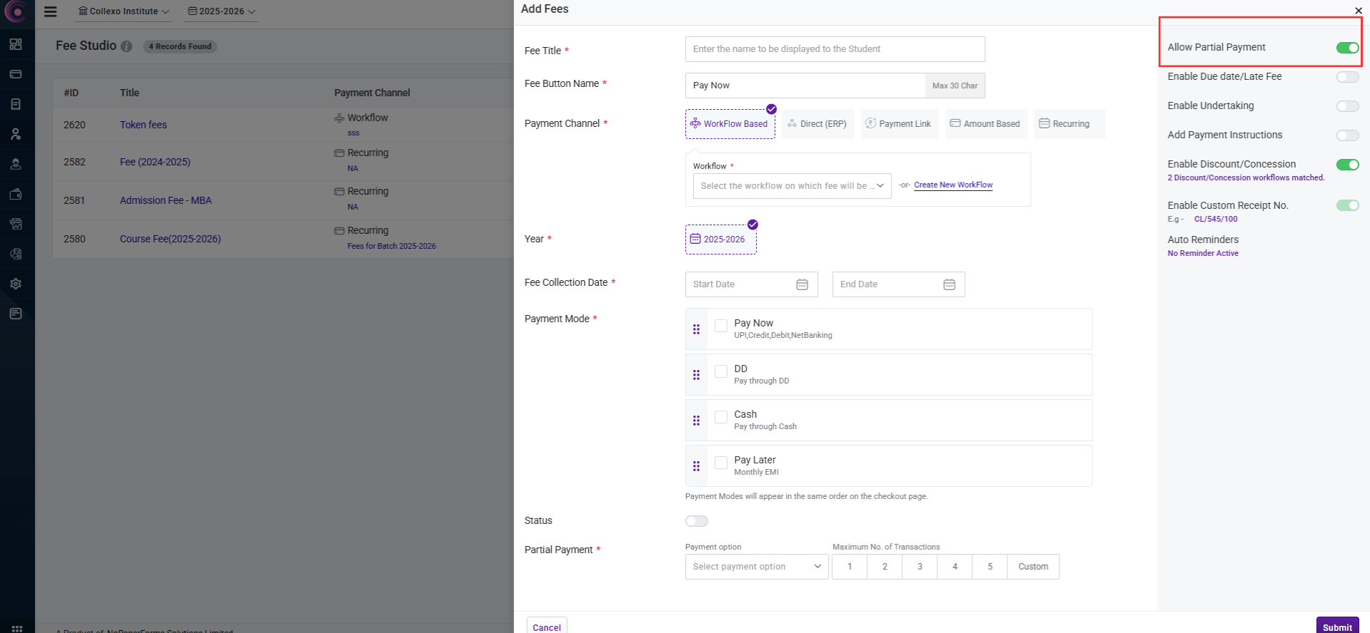 Let’s explore this feature in detail to understand how you can configure partial payments based on your institution's fee collection policies