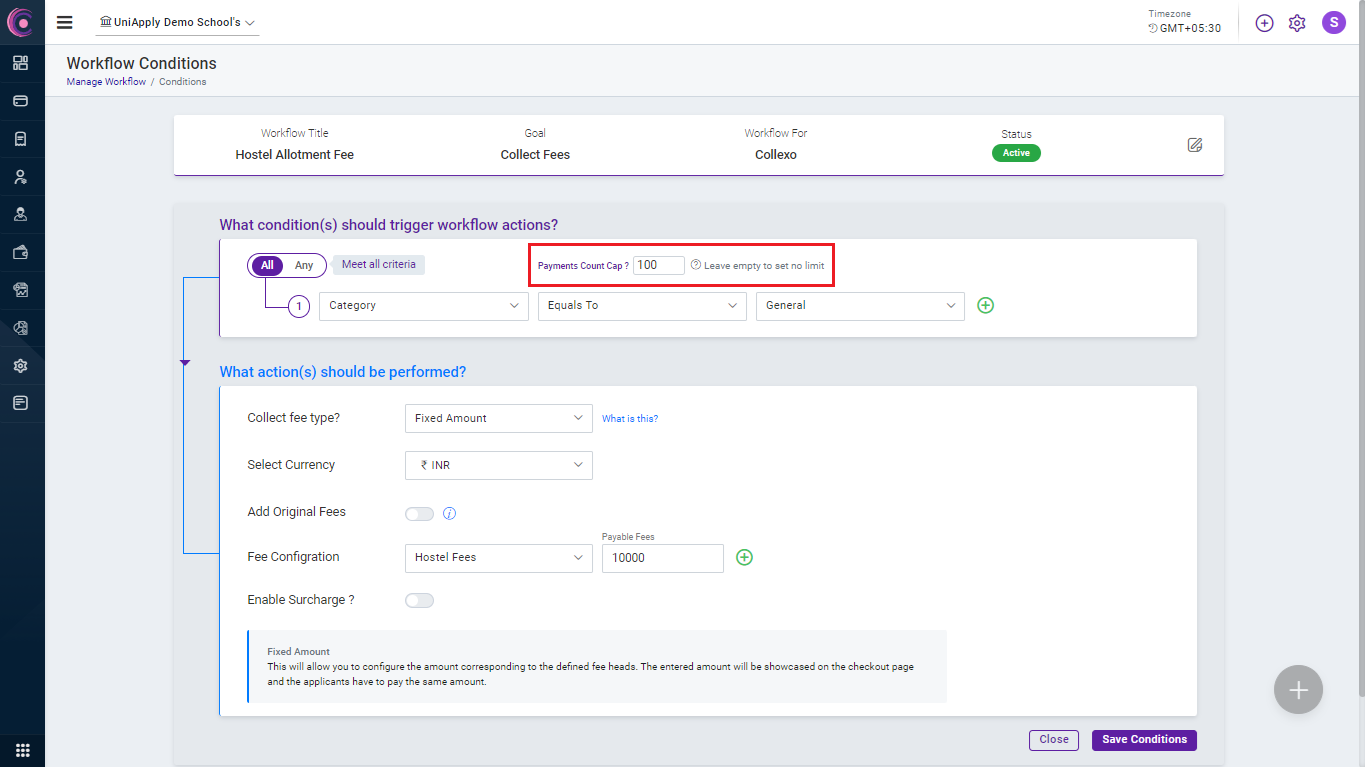 You can configure payment count cap from workflows. Payment Count Cap can be added to each workflow condition block, allowing you to define different limits for different sets of applicants based on the conditions.