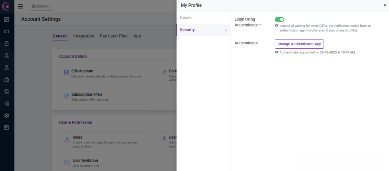- Turn on Login Using Authenticator toggle