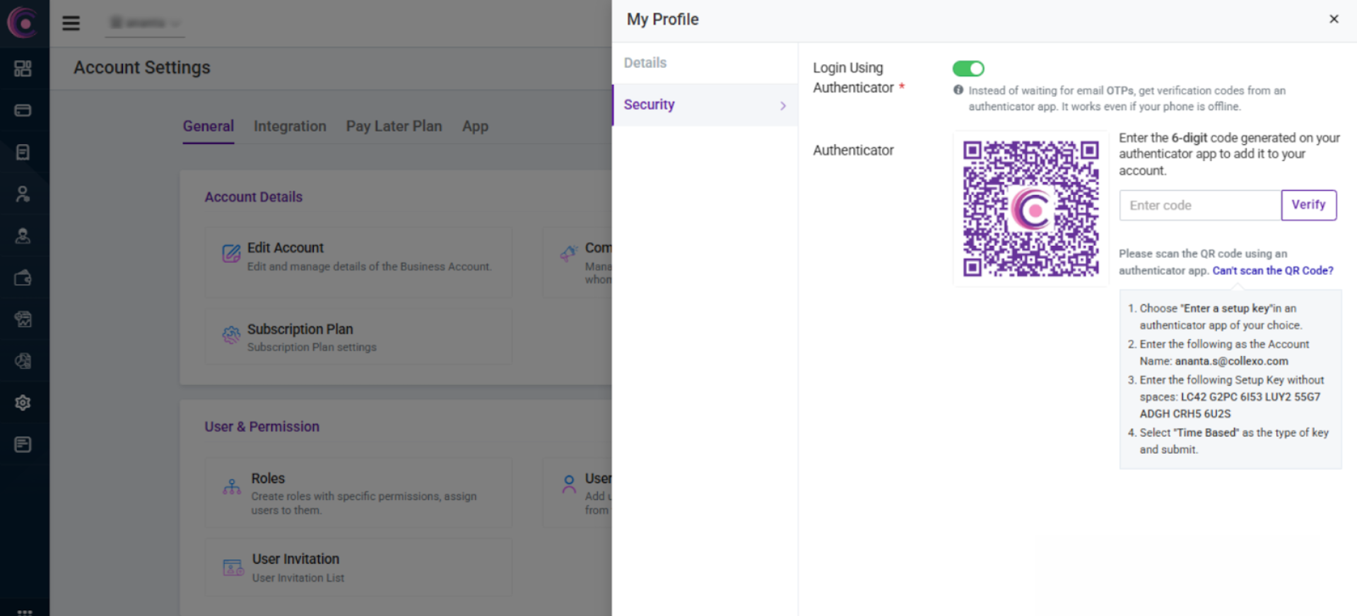 Note : Multi-Factor Authentication (MFA) is enabled by default to enhance the security of your account and data. However, if you choose to disable MFA, please note that Collexo will not be responsible for any data breaches, unauthorized access, or security incidents that may occur as a result of this action.