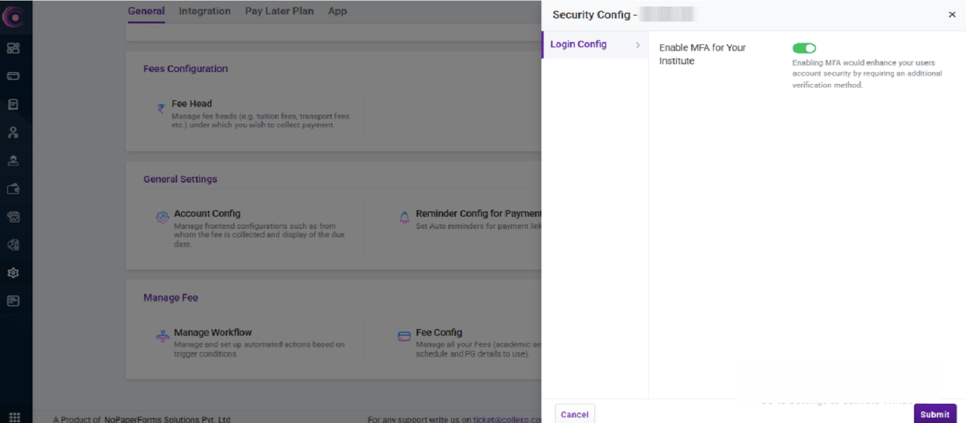 By default, MFA will be enabled for all institutes. MFA can be enabled/disabled via Security Config.