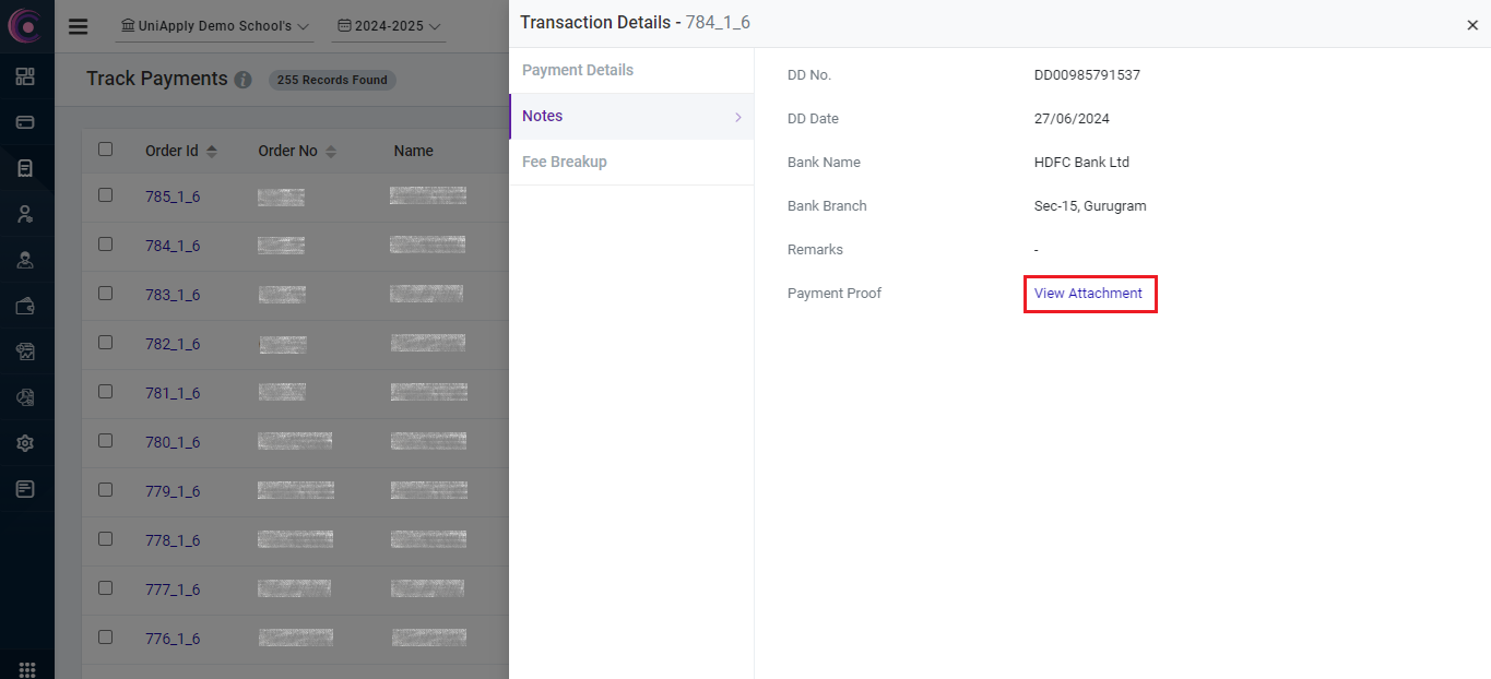 - Click on the View Attachment link against Payment Proof. The file would get opened in a new tab in your browser window.