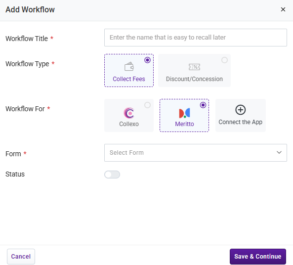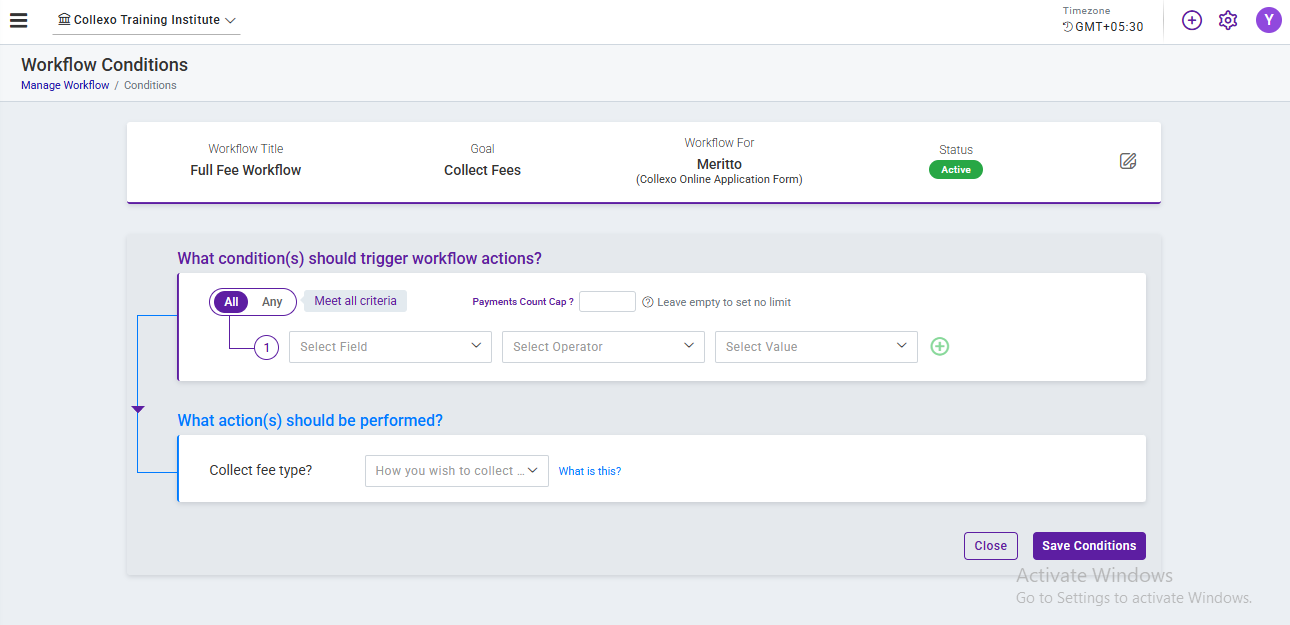 - Workflow Type: Select Collect Fees